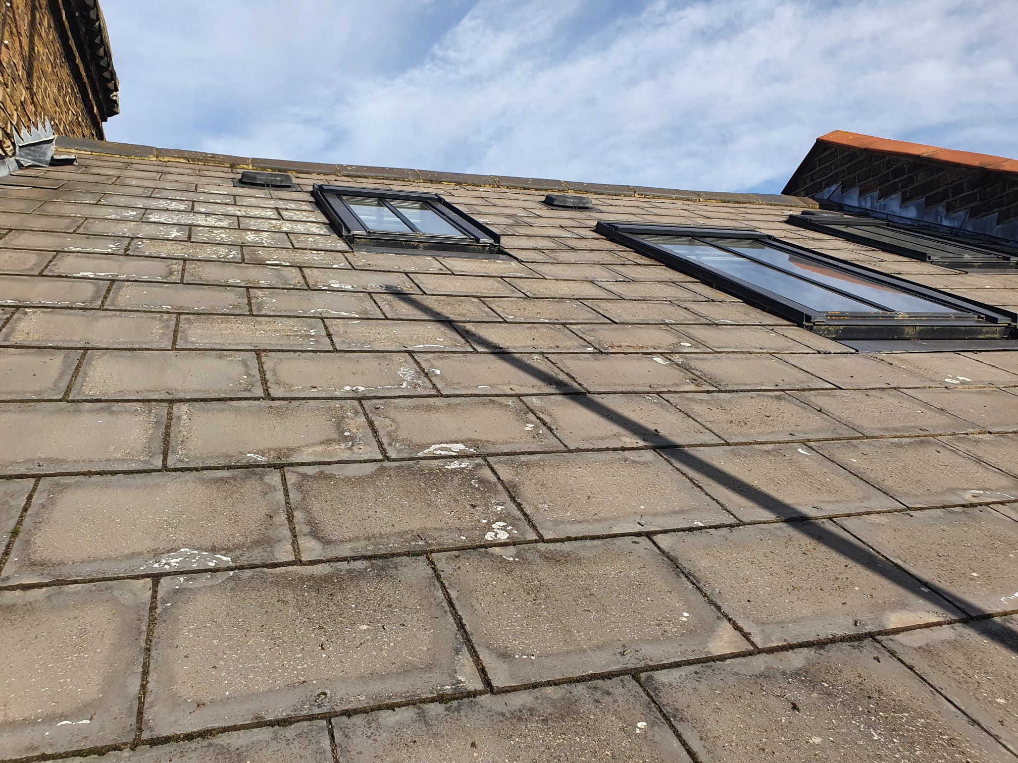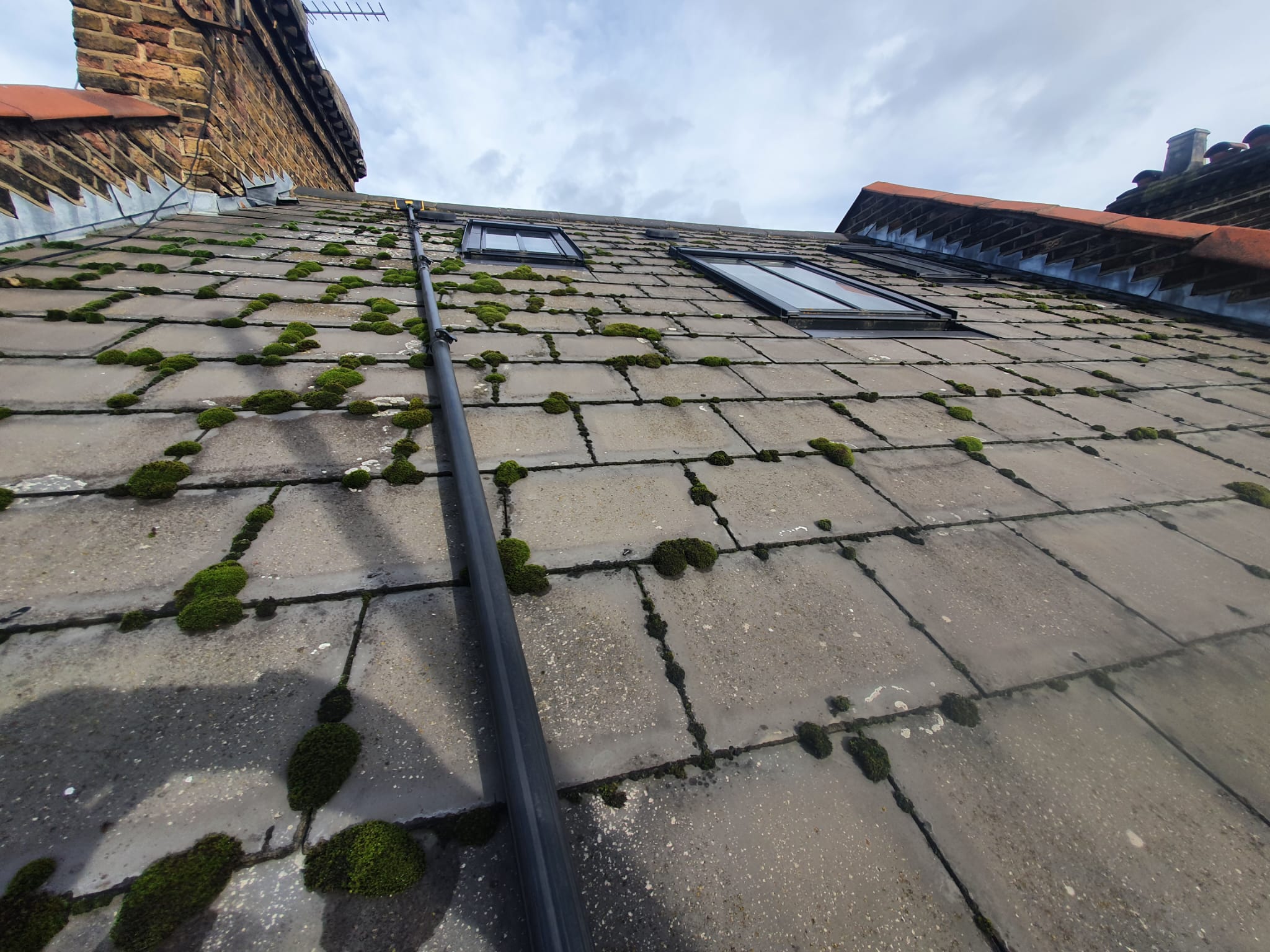 We use a combination of scraping to remove moss, algae, and debris, followed by the application of a biocide treatment. This treatment kills any remaining growth and protects your roof for up to 5 years, preventing further buildup. Our approach effectively restores your roof’s appearance and helps extend its lifespan, keeping it in excellent condition for years to come. The work can be safely done from the ground or using a scaffold tower, depending on the roof’s height and condition.
