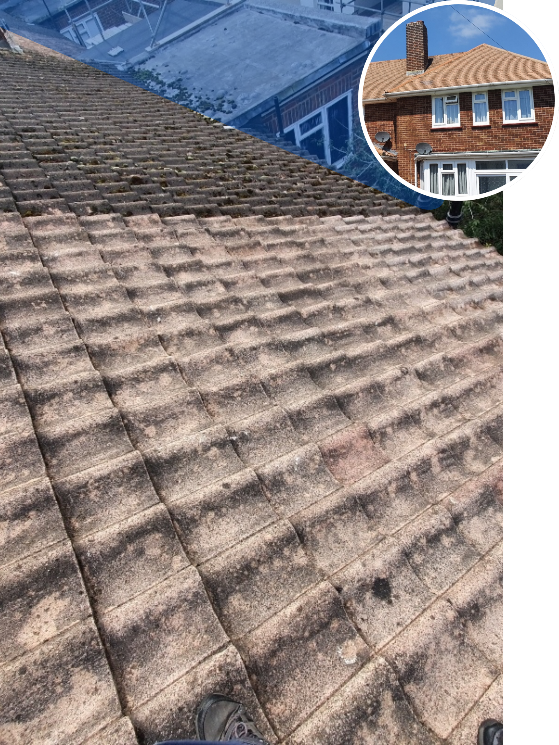 “Keep your roof in top condition with our professional roof cleaning service. We specialize in removing moss, algae, dirt, and debris, restoring your roof’s appearance and ensuring its longevity. Plus, every roof clean includes a FREE complimentary gutter clean to prevent blockages and remove any excess moss. Trust our team for a thorough clean that enhances the look and performance of your roof.”